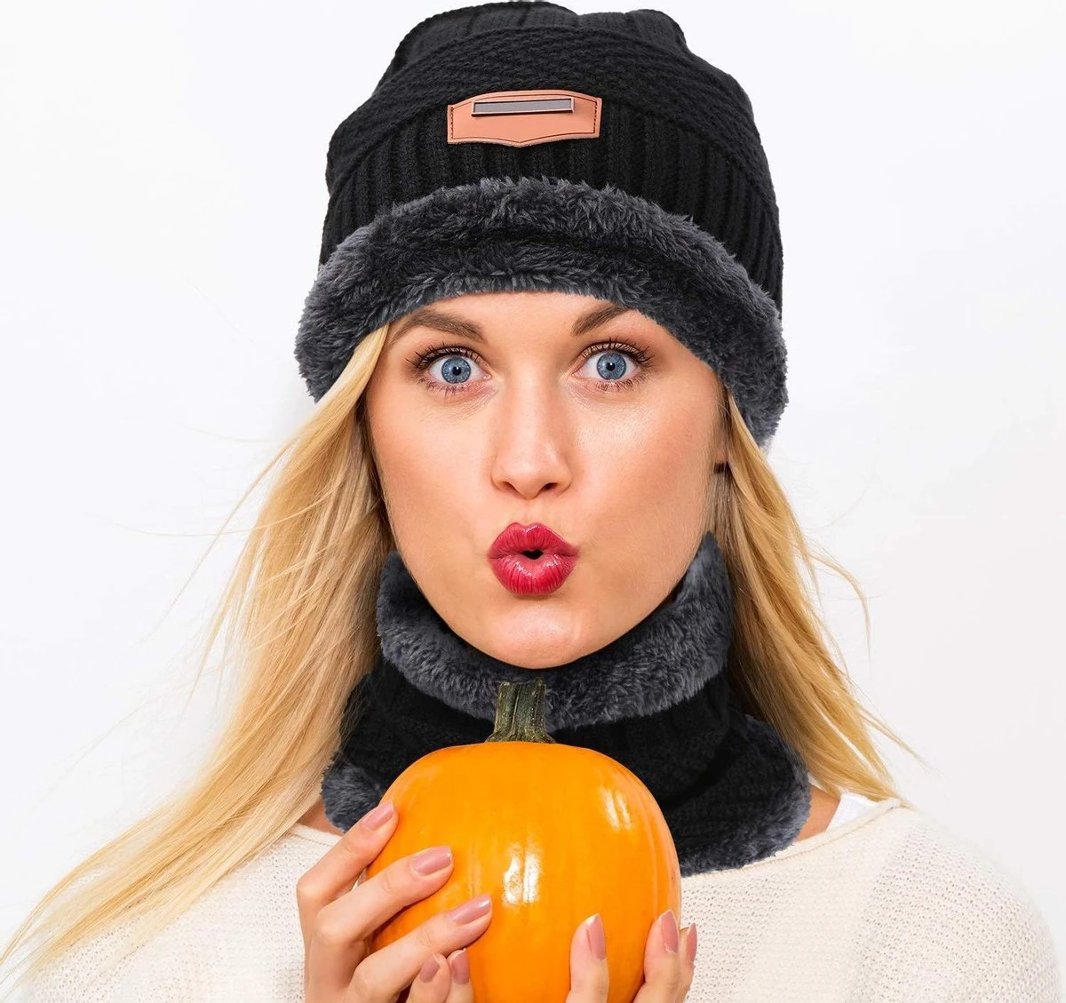 Deze trendy gebreide/gehaakte beanie met colsjaal set houdt je lekker warm bij het skaten, skiën of bij alle andere activiteiten buiten de deur. Deze beanie rekt mee en zit dus altijd goed. Een trendy accessoire waar je mee gezien mag worden. De beanie en colsjaal hebben een heerlijke fleece voering voor maximaal comfort en warmte.