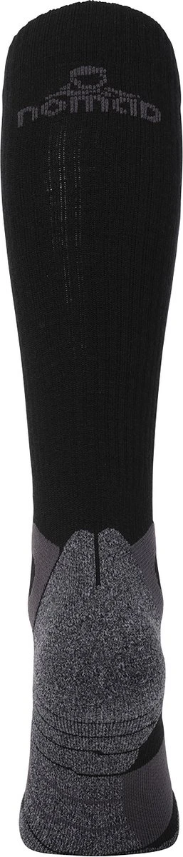 De high-performance NOMAD® Ski Sok Pro Merinowol is gemaakt voor lange en intensieve dagen op de piste. De hoogwaardige Merinowol zorgt voor een effectieve warmteregulatie, de anatomische pasvorm en verticaal geweven wreefband laten de sok naadloos aansluiten aan je voet en de hoge schacht biedt een lichte compressie die de spieren stabiel houdt. De sok geeft veel bescherming en een evenwichtig schoencontact. Kortom: met de NOMAD® Ski Sok Pro kun je altijd comfortabel en warm de piste af!