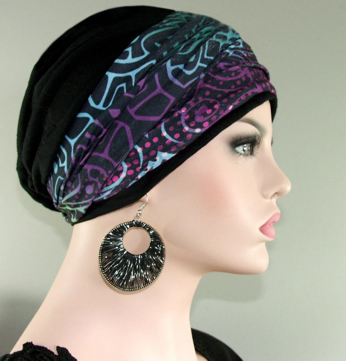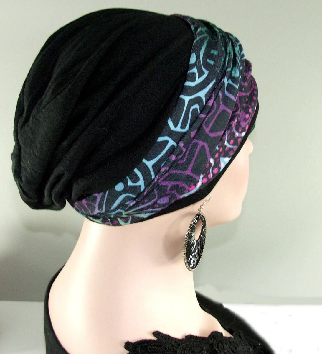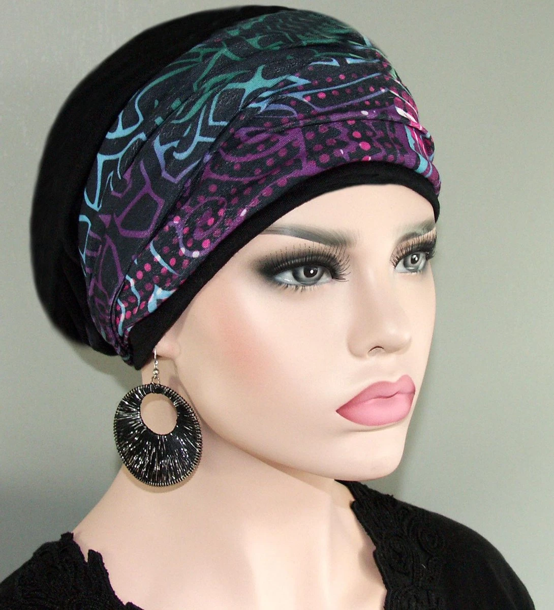 Set van een zwarte muts en een losse haarband buff fantasieprint